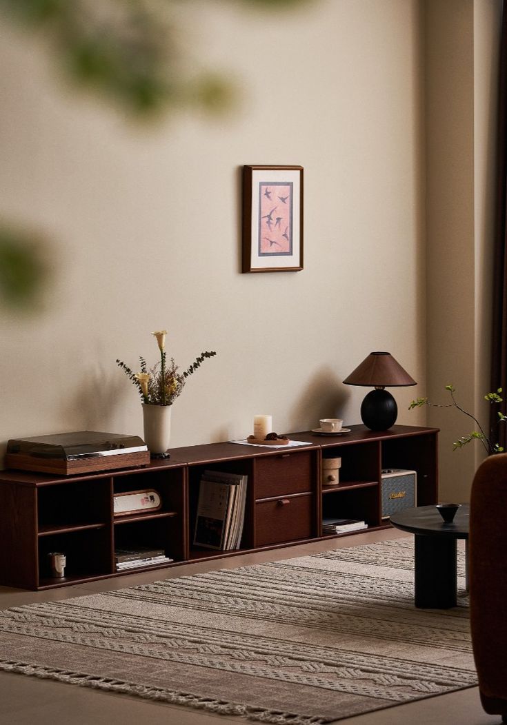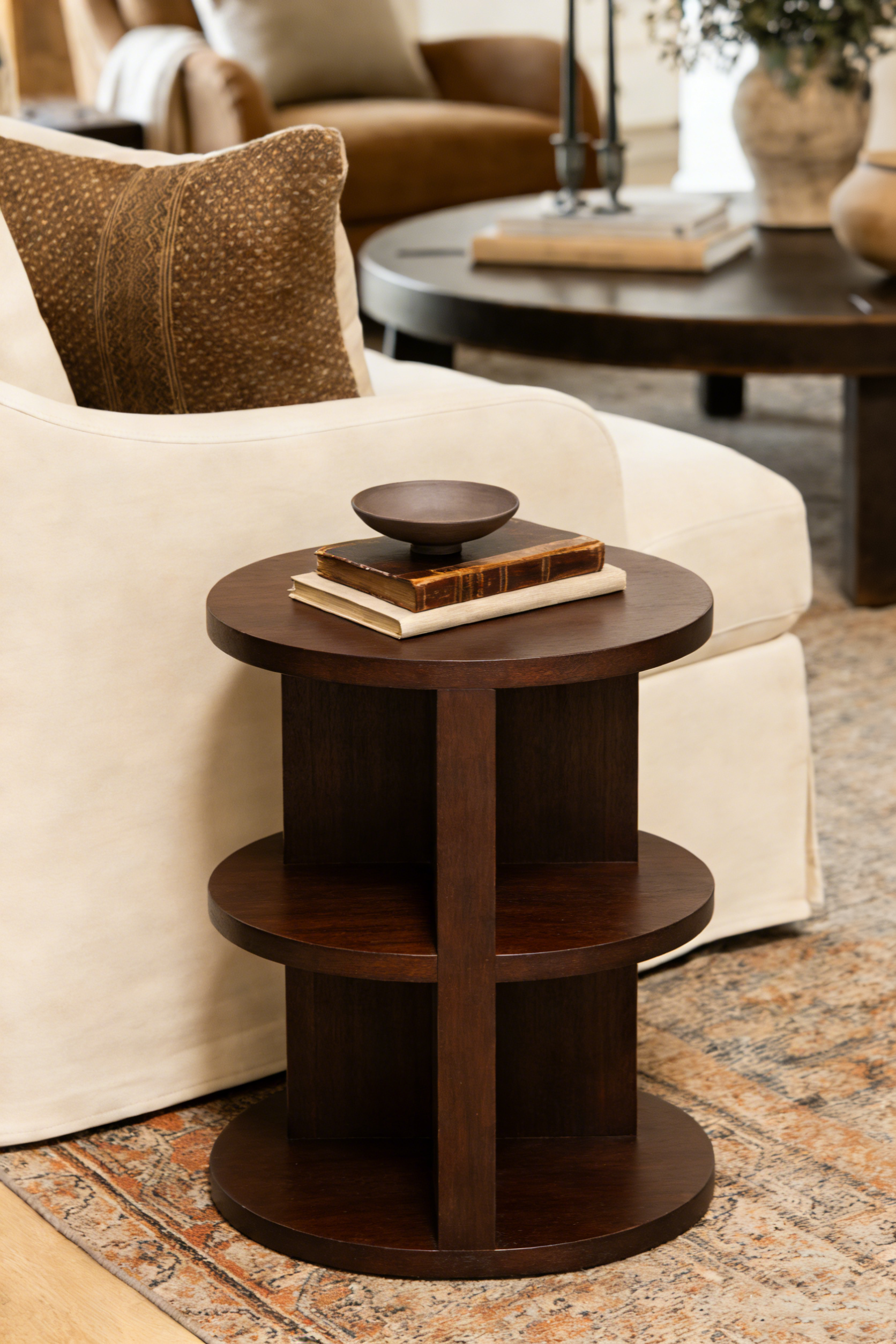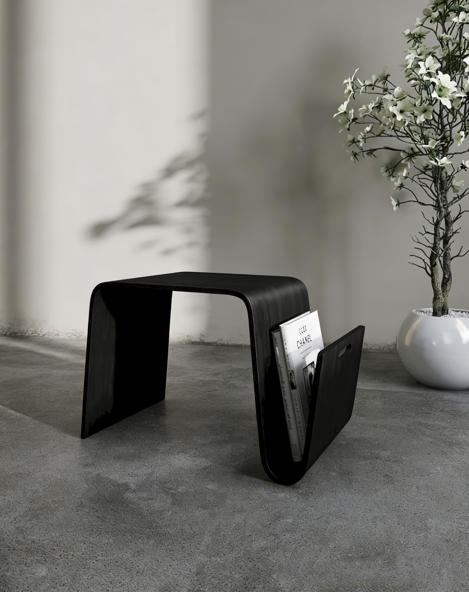Il s'agit d'une table d'appoint moderne minimaliste en bois noir. Son design épuré est plein d'ingéniosité, ce qui en fait un meuble fonctionnel parfait pour le salon, le bureau ou la chambre à coucher.